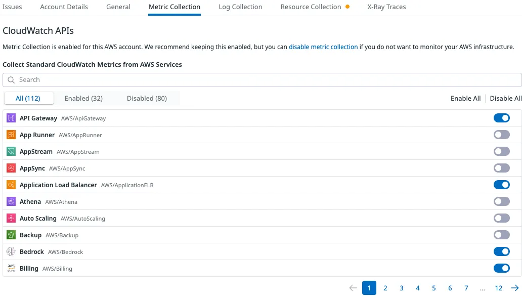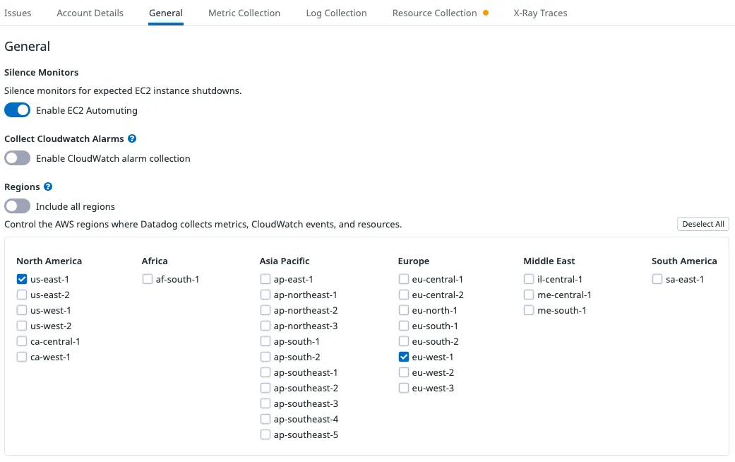 Cloud providers may charge for API calls, and Datadog integrates with cloud APIs to collect data. To minimize cloud provider billing, you can limit the scope of crawlers, excluding non-essential services or regions from being monitored. Again, more details for each provider will be given below.