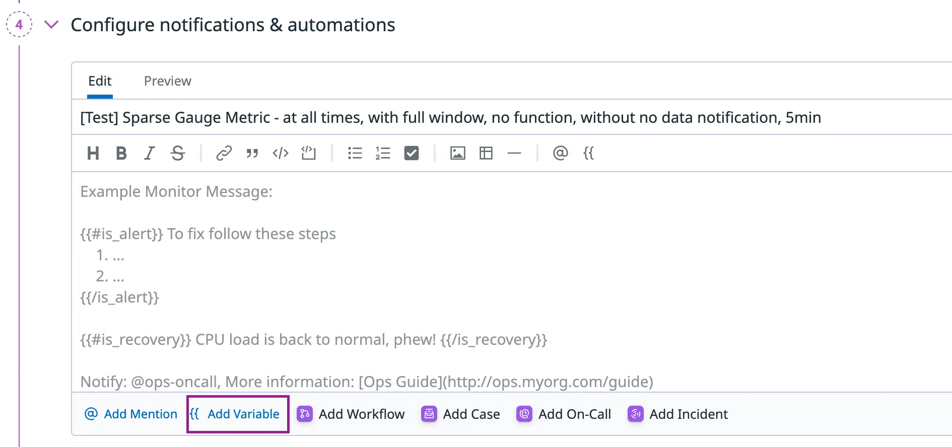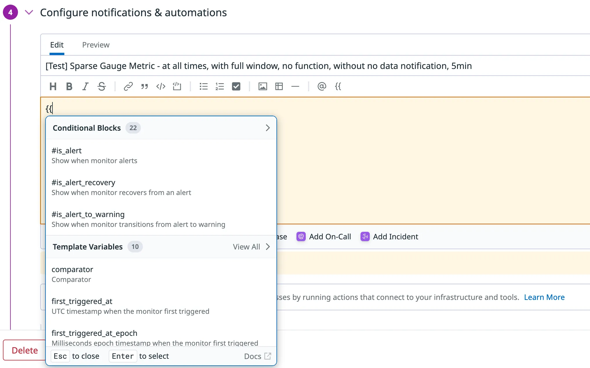 • {{#is_recovery}} for recovery/resolved notifications
