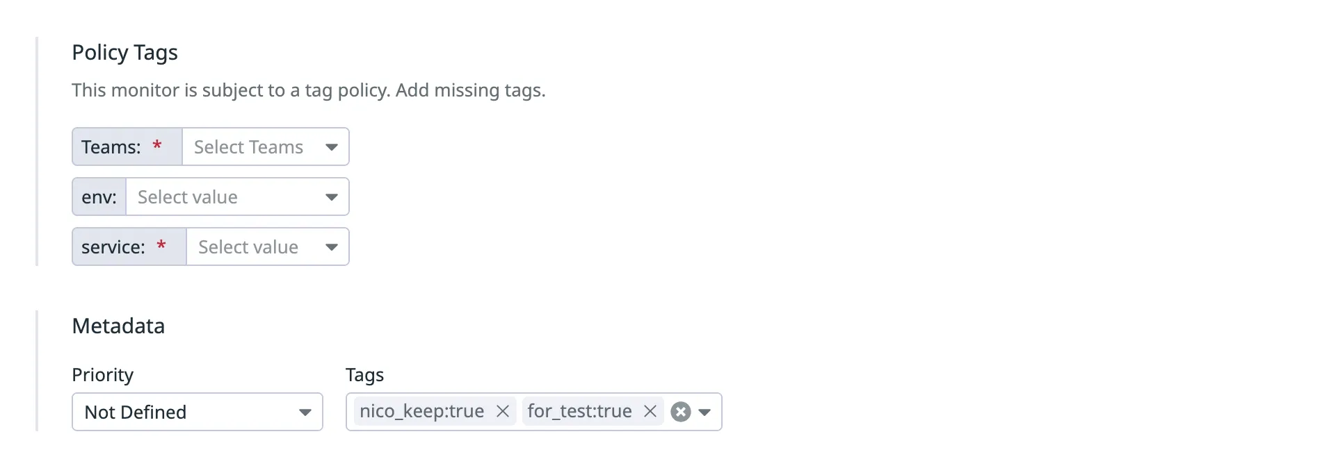 Monitor Settings — Tag policies (Datadog)